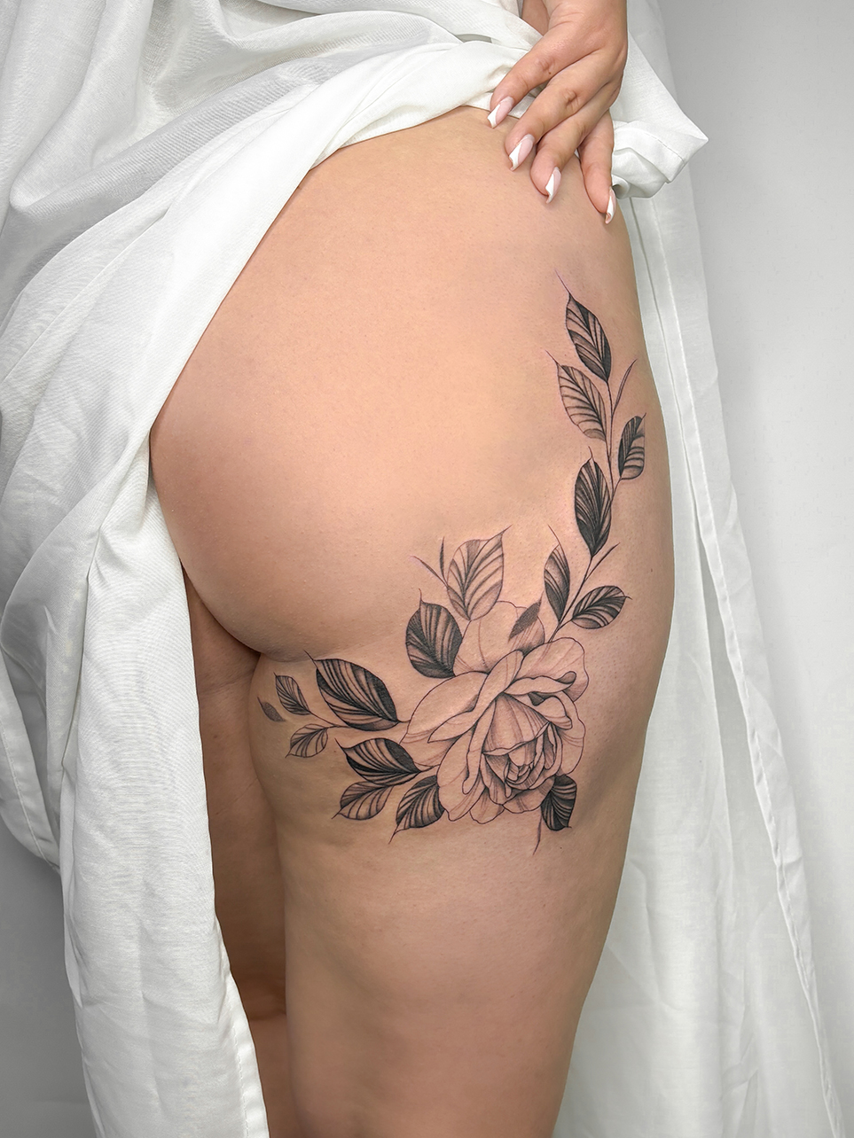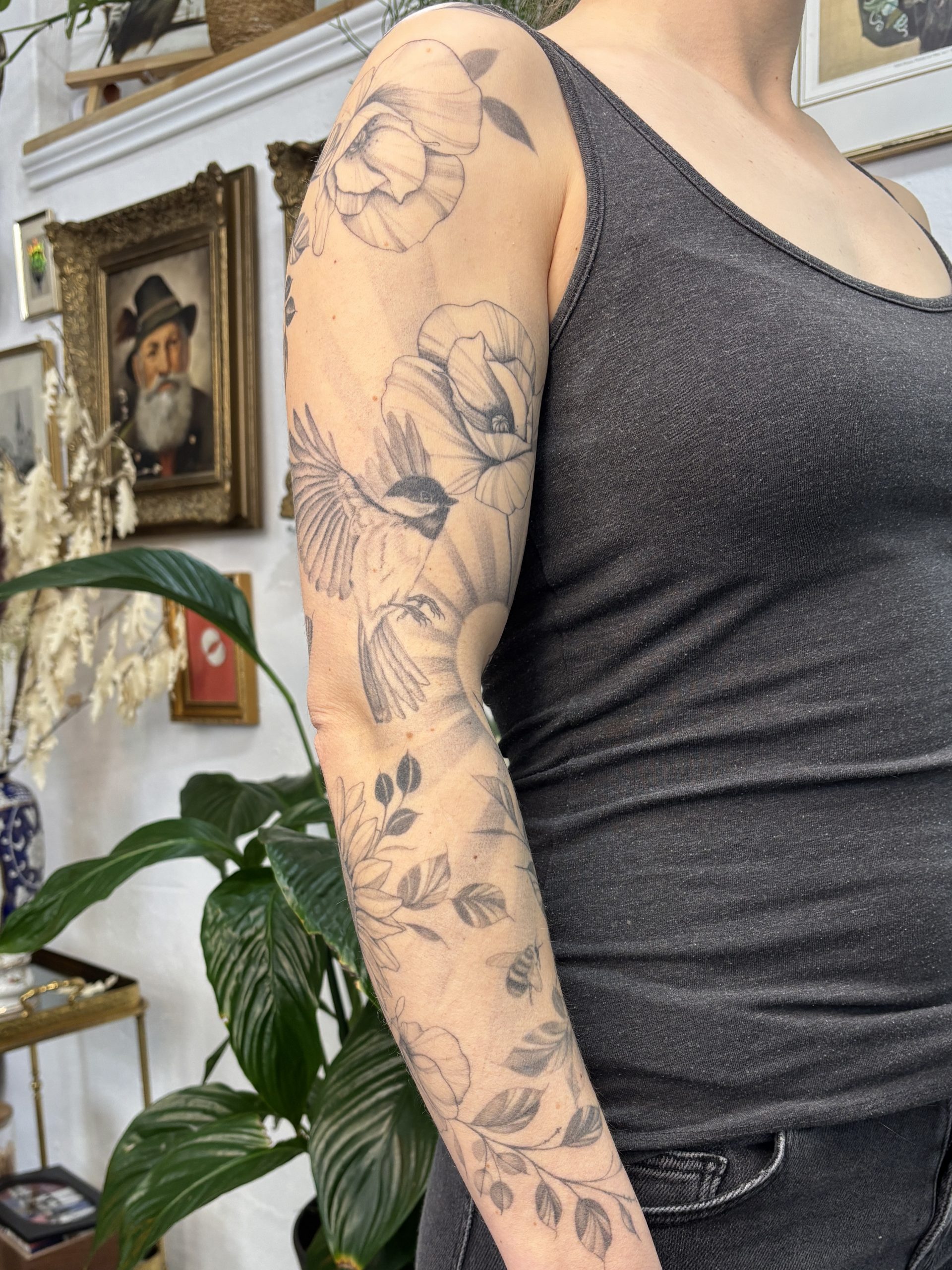 Seitdem schafft sie filigrane Kunstwerke auf der Haut und spezialisiert sich auf florale Motive und Fineline. Ihre Arbeiten zeichnen sich durch „Liebe zum Detail“ und eine sanfte Ästhetik aus. Für Nathalie ist jedes Tattoo mehr als nur ein Motiv – es ist eine persönliche Geschichte, die von ihr mit Feingefühl individuell gestaltet wird.